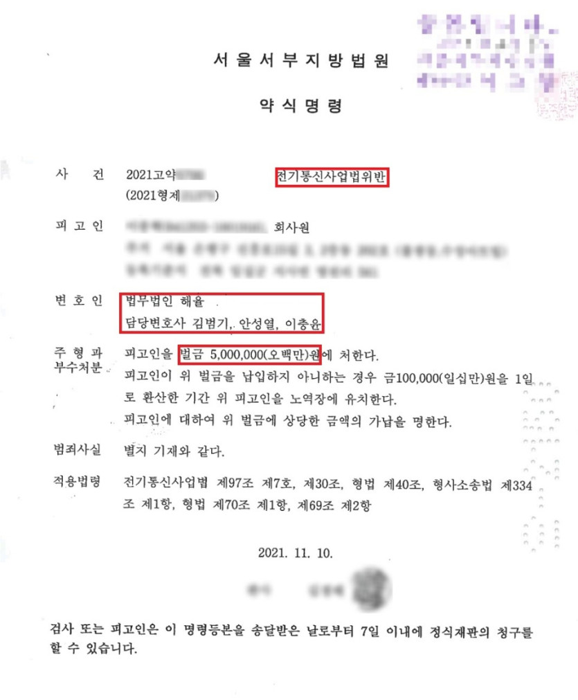 [보이스피싱]보이스피싱 피의자를 변호해 전기통신법 위반만 약식명령으로 처벌