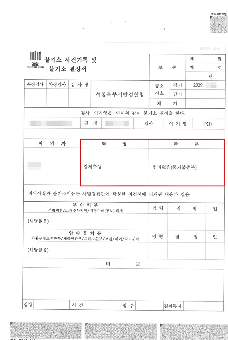 [강제추행]피의자 변호해 혐의없음 불기소 처분